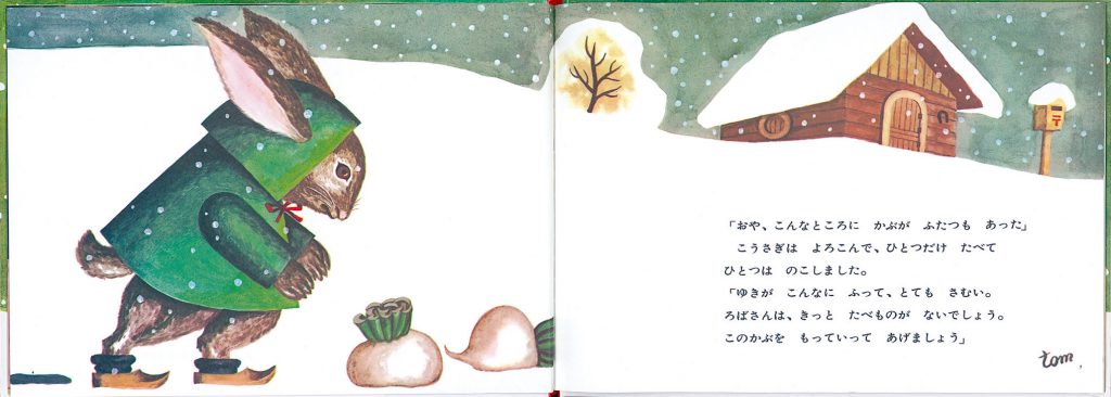 お腹がすいたうさぎが、かぶをふたつ見つけました。