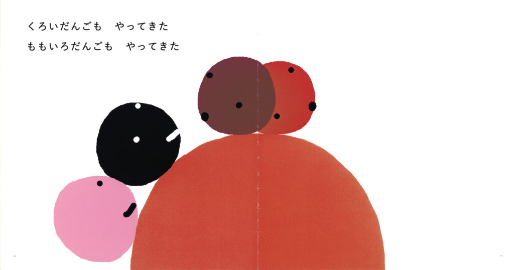 だんごの子どもたちが、おだんごやまにやってきて、登って、転がって、夜にはお月さんまでやってくるという、まるいものづくしの世界は、なんともいえず心地よく楽しいですね。まるいものには、人を和ませる不思議な力があるようです。