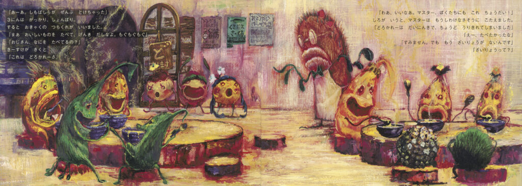 どうしてもどろかれーを食べたい3人が奮闘する物語です。