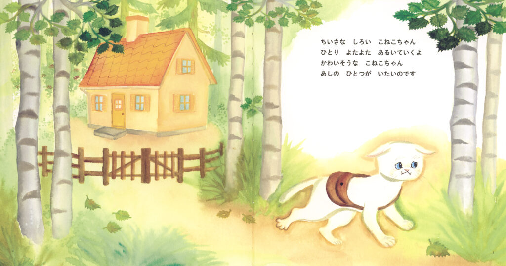 足をけがしたこねこちゃんが、暗い森に住む、医者のフクロウ先生をたずねます。