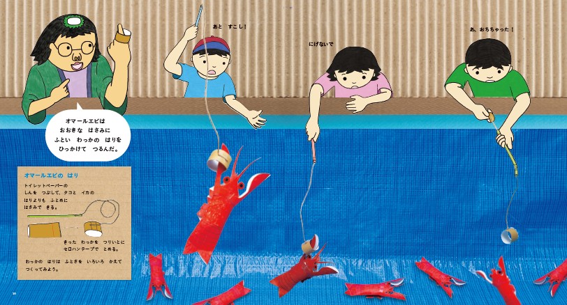 磁石などをつかった魚釣り遊びは古くからありますが、簡単過ぎると飽きてしまいます。年長さんになれば、発見する喜び、工夫する楽しさが、もっとあっても良いでしょう。本書ではウナギやアンコウなど、様々な形状の魚をトイレットペーパーの芯で工作して、さらに釣り具も作ります。魚釣り遊びのトライ&エラーを通して、工夫する楽しさを味わいましょう。