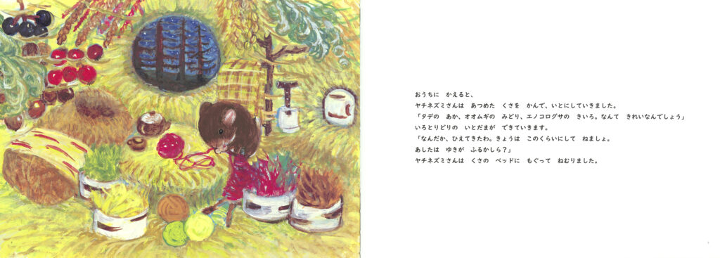 編集担当が特に好きな場面は、ヤチネズミさんが出発するまでに、だんだん雪の音が変わっていくところです。比較的あたたかいときに降る重い雪と、寒さが厳しいときのさらさらの雪……。変わりゆく音に雪国のリアリティが感じられ、本当にその土地に暮らしているような気持ちになります。寒い冬に起こったあたたかな出会いの物語を、どうぞお楽しみください。
