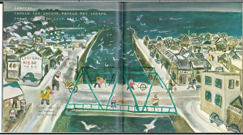 私の一冊は、石川県輪島市の「輪島朝市」の風景を描いた絵本