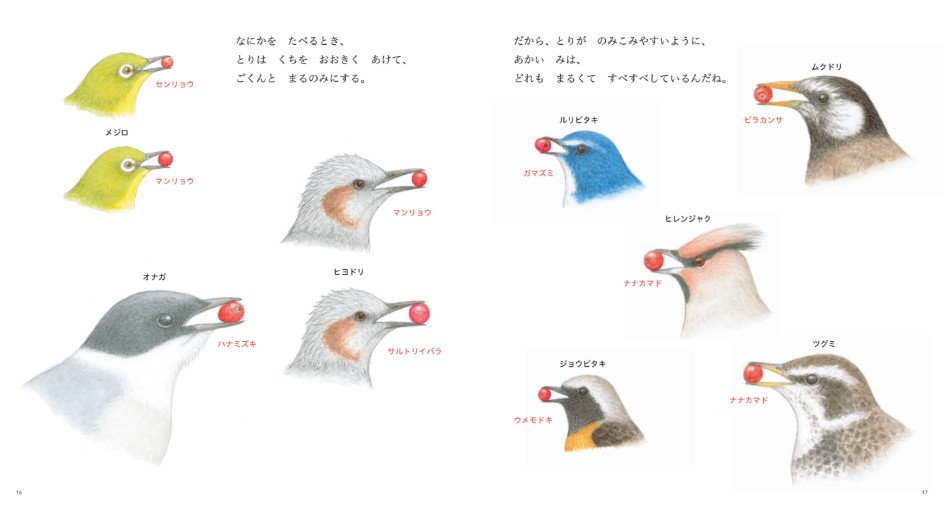 ノイバラ、ナナカマドなど、冬に赤い実をつける植物がたくさんあります。植物は鳥に種を運んでもらいたくて、鳥の目にめだつ赤い色で鳥を誘っているのです。鳥がのみこみやすいように、丸くてつるんとした小さな実をつけますが、おいしいとは限りません。毒のあるものもあります。なぜでしょう?「食べてもらいたい。でも、ちょっとだけ」植物の作戦を考察します。
