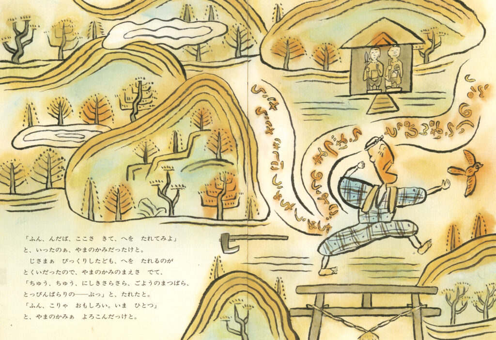おならの話というと大人はつい顔をしかめてしまいそうですが、子どもたちはこの原始のよろこびを、体いっぱいで味わっているのでしょう。おおらかな昔話の世界をお楽しみください。