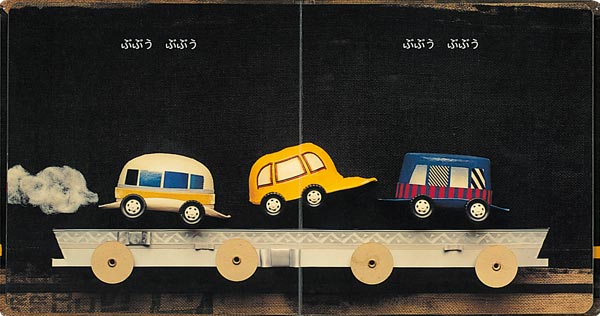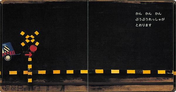 「かん かん かん」のリズミカルな音に導かれて、遮断機の向こうを様々な列車が通ります。