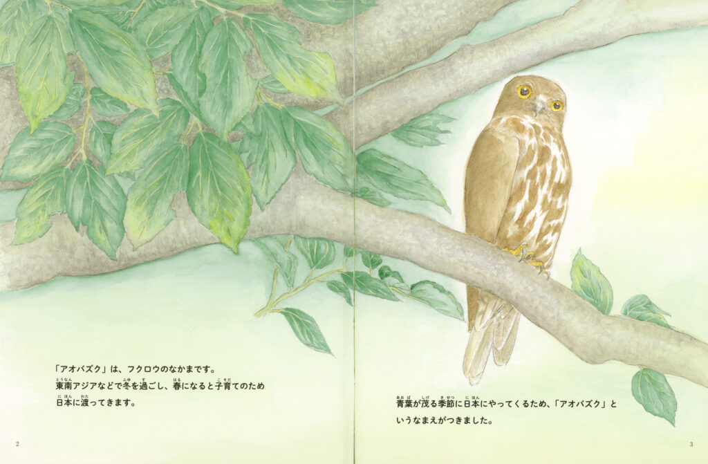 その成果をまとめた論文が、2023年に日本鳥学会内田奨学賞を受賞しました。本作はその際の研究内容をもとにしており、絵もご自身が心を込めて描いています。新緑の季節を思わせる透明感のある絵とともに、いきものの生態を解き明かしていくよろこびを味わっていただけたらうれしいです。