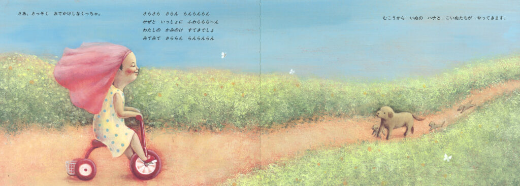 このお話は、著者の洞野さんの友人のお姉さんがモデルで、幼いころ、長い髪に憧れて、幼稚園に行くのも、散歩に行くのも、スカートを被って行ったそうです。