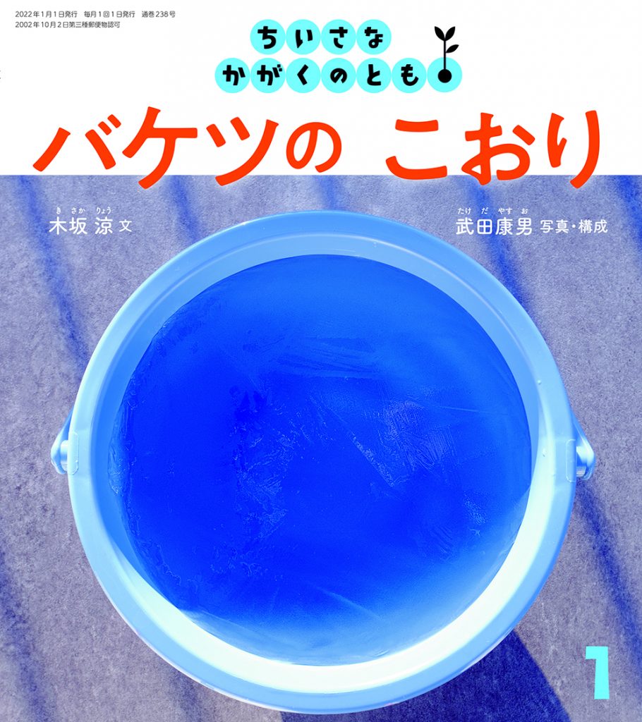 寒い朝、バケツの水が凍ったよ。ふしぎな模様、ふしぎな形。